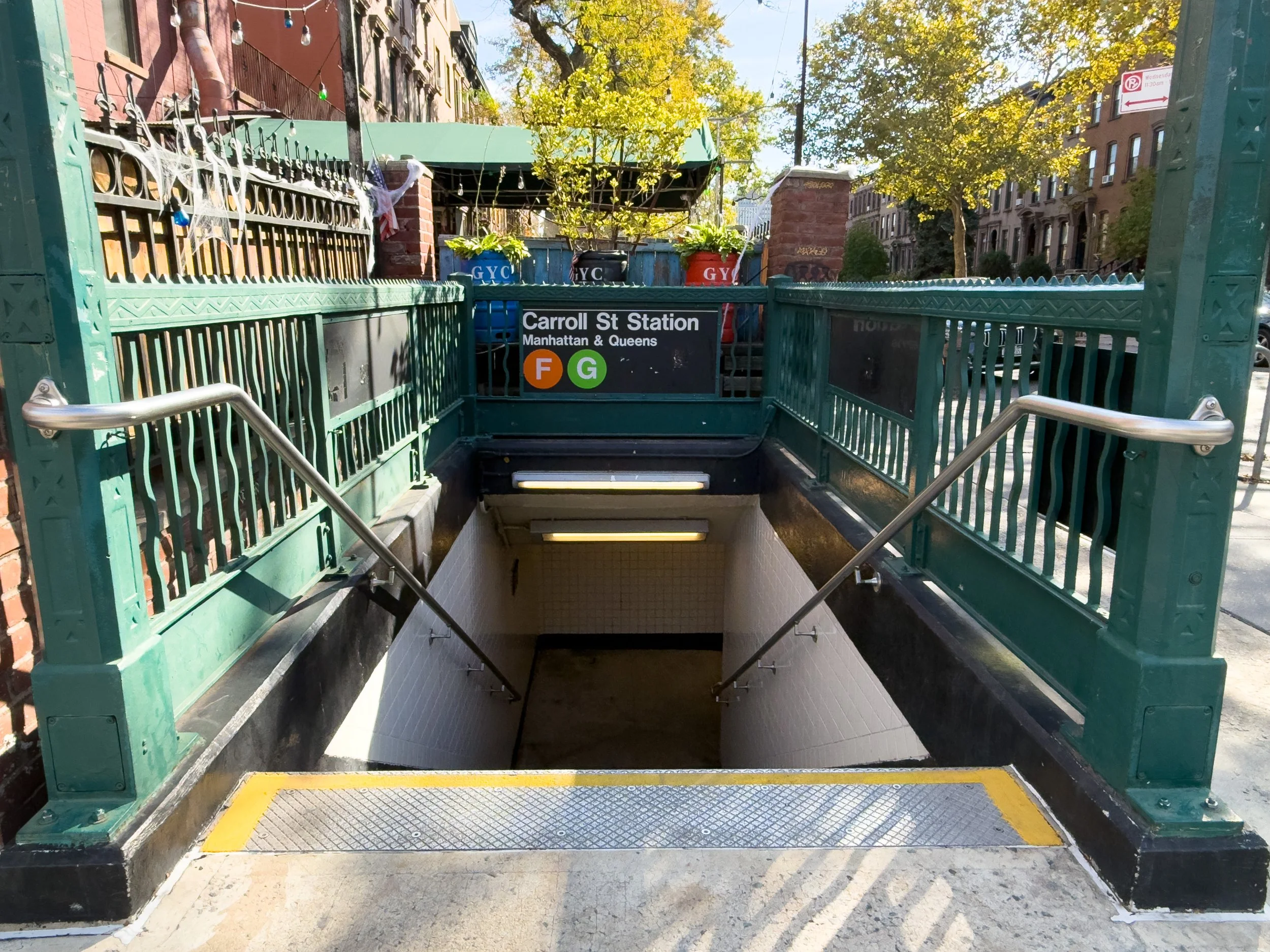 Carroll Gardens is well-served by subway and bus lines that make commuting straightforward. The (F) and (G) trains at Carroll Street and Bergen Street provide direct access to Downtown Brooklyn, the Upper West Side (via transfers), and Queens. Nearby stations in Cobble Hill and Boerum Hill expand options with the (2) (3) (5), (A) (C), and (R) lines within a short walk or bike ride.